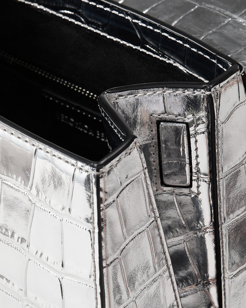 Croc-Embossed Crest Lock Bag