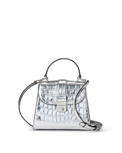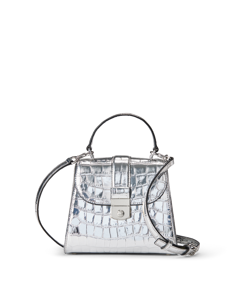 Beautifully crafted in croc-embossed leather, this bag is a study in chic sophistication. Finished with a crest-lock closure, this ladylike satchel is designed with both a structured top handle and a removable shoulder strap for maximum versatility.
